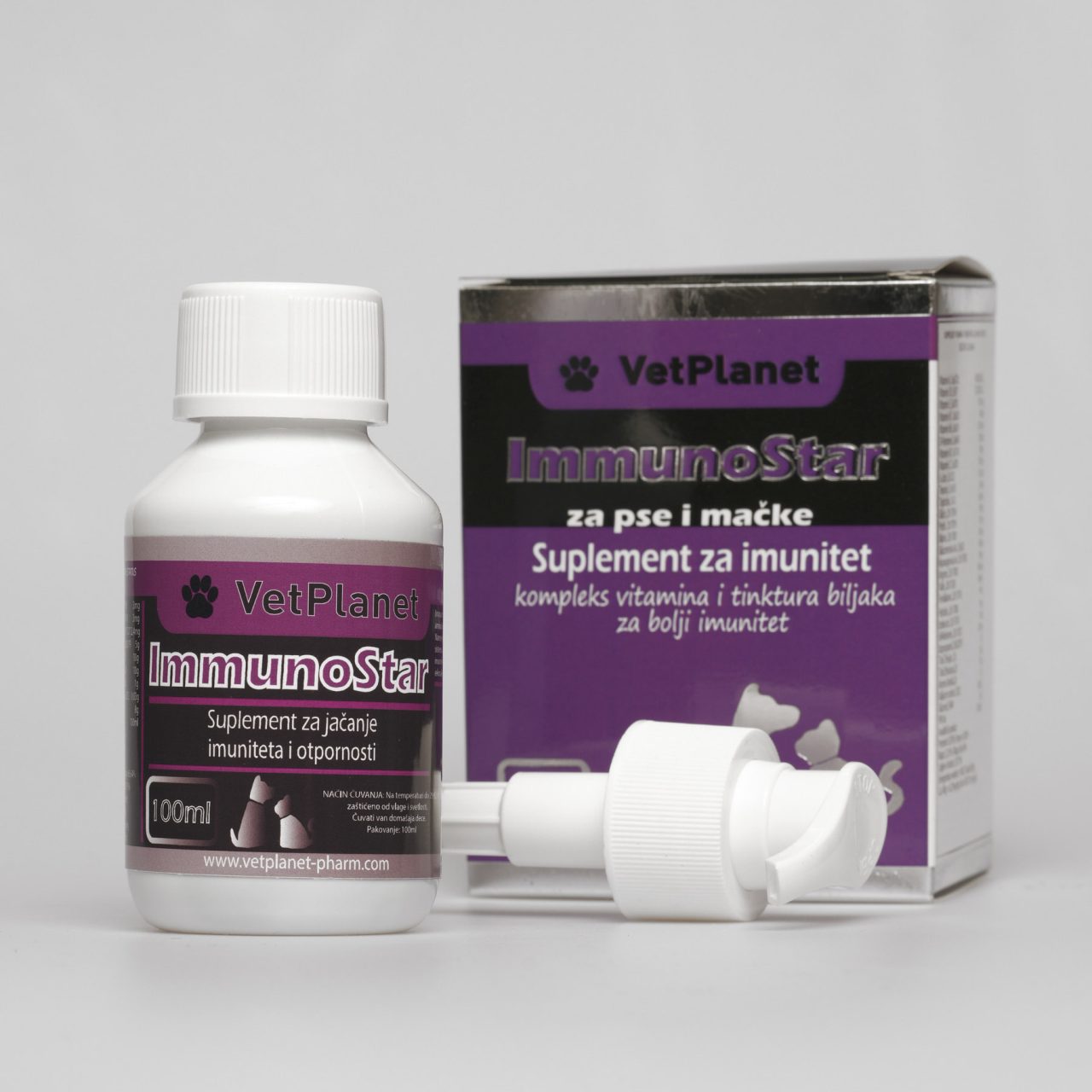 PROPERTY OF INGREDIENTS: Vitamins and essential oils stimulate immunity in the best way, they protect animal health and support the treatment of diseased individuals. ImmunoStar is used in all conditions in which immunity is needed, in the period of acute and chronic illness, recovalescention, allergy stages. It is easy to administer ImmunoStar when it is expected that immunity will drop due to stressful situations, insomnia, nervousness, aggression, increased activity during hunting or competition-exhibitions.