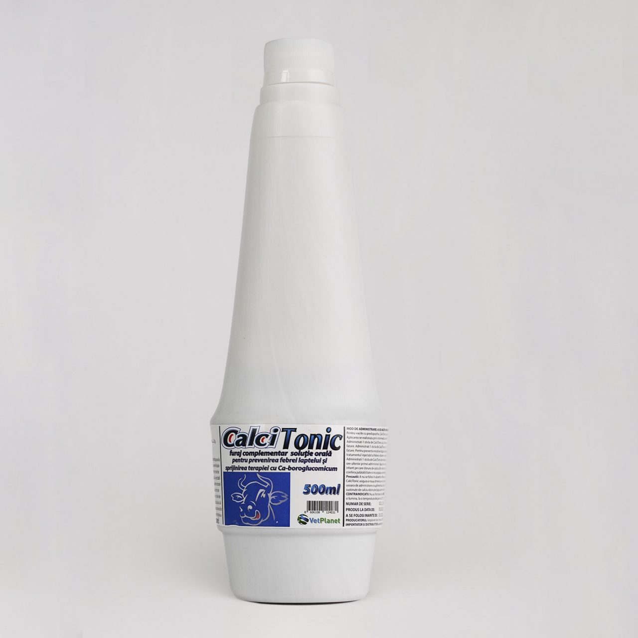 DESCRIPTION CalciTonic is an effective aid in the prevention and treatment of milk fever in cattle. CalciTonic may be given to cows: 1. Before calving to help prevent the occurrence of milk fever in susceptible cows. Using CalciTonic by prescription significantly reduces the occurrence of Milk fever, especially typically asymptomatic subclinical Milk fever, which also causes big production problems without seeing signs. 2. Following treatment with injectable calcium borogluconate to reduce the possibility of relapse. Action: The calcium chloride is rapidly absorbed following oral administration. Within 45 minutes significantly elevated blood calcium level is achieved, which is maintained for up to 14 hours. CalciTonic helps lower blood pH, which has the effect of significantly increasing the amount of free available calcium in the blood.