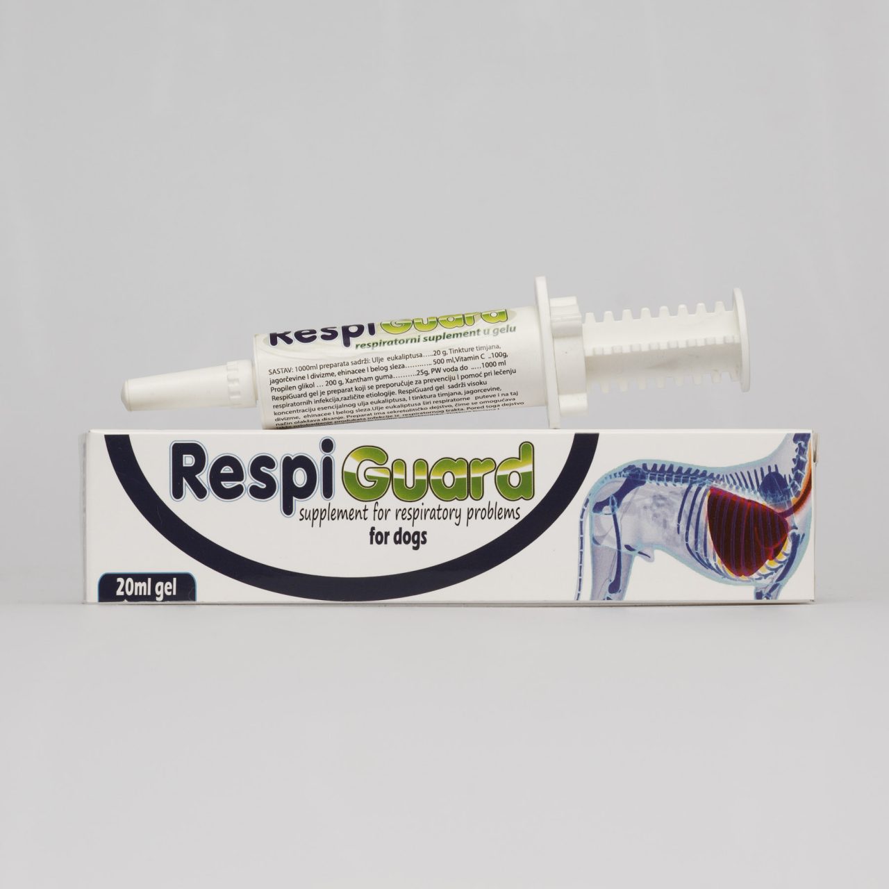 PROPERTIES OF THE INGREDIENTS: RespiGuard gel is a preparation that is recommended for the prevention and treatment of respiratory infections, different etiologies. RespiGuard gel containing high concentrations of essential oil of eucalyptus, and tincture of Thymus Hawks, Common mullein, Echinacea and White spruce Eucalyptus oil spreads the respiratory tract and thus facilitates breathing. The preparation has a secretory effect, enabling easier release of respiratory tract infection products. In addition, the effect of Cineol 1,8 which contains Eucalyptus is and is extremely antibacterial. Tincture of thymus and Echinacea strongly enhances immunity and supports the antimicrobial effect of the product. Hawks and Common mullein are positively affecting to decrease pain caused by the inflammation of the upper dissecting pathways. The White spruce coats the mucosa of the respiratory system and reduces cough irritation. DOSE: 2 times a day 7-10 consecutive days. Small dogs 2ml, Middle size dogs 4ml, Big dogs 6ml
